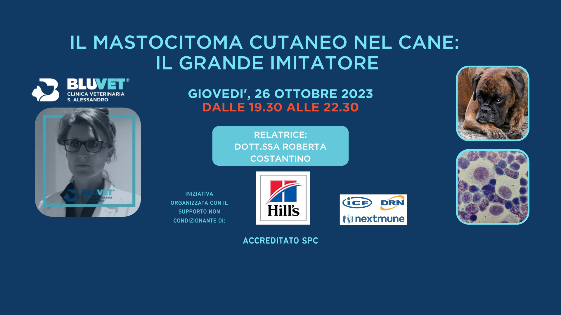Il corso è rivolto esclusivamente ai Medici Veterinari e ha lo scopo di fornire le conoscenze per la gestione e riconoscimento del mastocitoma nel cane, attraverso casi clinici e spunti di riflessione forniti dall’esperienza sul campo.
